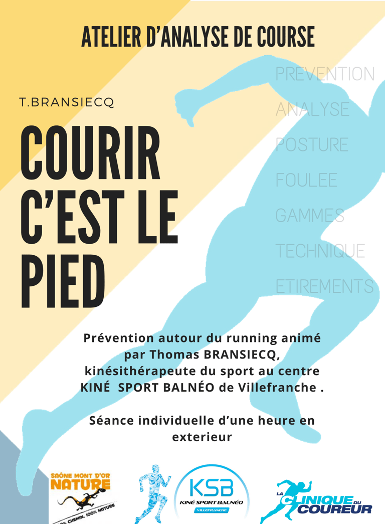Le cabinet KSB VILLEFRANCHE vous propose votre Analyse vidéo de course à pied selon la clinique du coureur .Formés par Blaise Dubois (physiothérapeute au Canada, fondateur de la clinique du coureur) nous vous proposons un bilan complet et une analyse vidéo de votre foulée .
